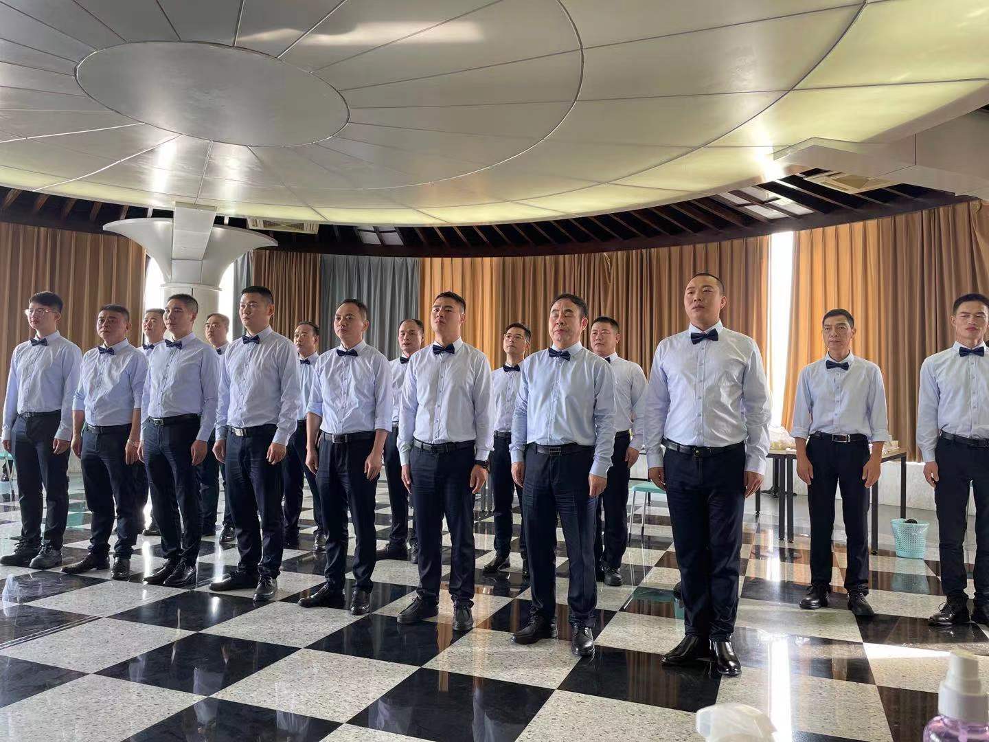 当接到参赛这个橄榄枝后,我们的工会主席李总和党支部的庄经理,迅速筹划、组织、合唱队工作,一切从零开始。紧急关头海沧铝箔三期员工退伍老兵肖清友,以一个老兵的责任和担当积极主动联系:湖里厂、板带厂和四期的退伍老兵,在公司的各个微信群邀约:公司要组建一支合唱队,利用工作闲遐时间义务地为期两个月的训练并参加比赛。当收到这个邀约的时候,我的第一反应:我能胜任吗?毕竟唱歌对我来说还是相当有挑战的,当得知有专业的老师指导后就毫不犹豫地报了名。