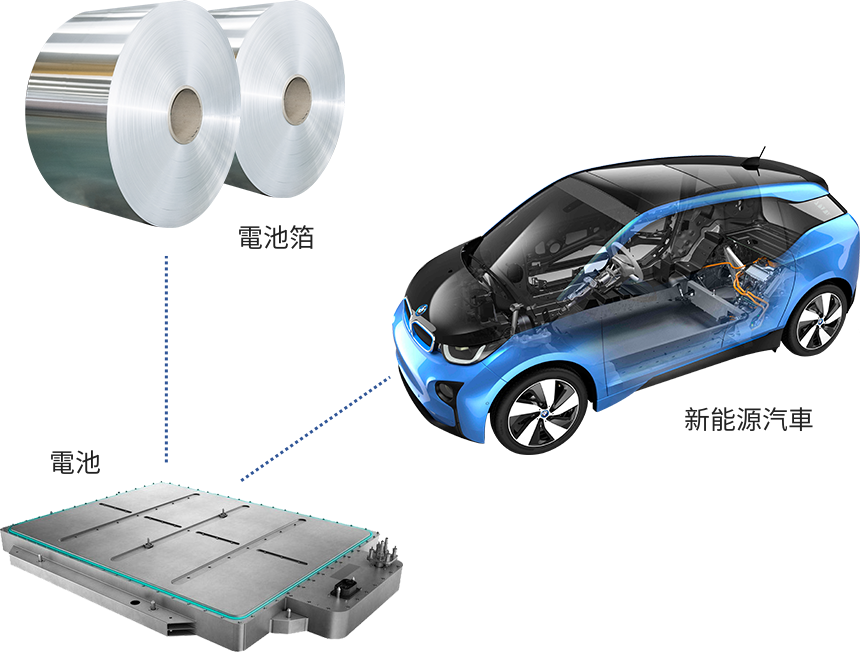 廈順開發生產的電池箔使用在動力產品上,產品通過合金成分的設計及合理的熱處理製度,使其具有良好的導電性,降低電芯內阻,良好的機械性能,降低下遊輥壓工序斷帶頻次,增加電芯充放電頻次。先進的生產工藝保證鋁箔厚度均勻,下遊極片一致性良率高;良好的表面性能及穩定性,保證了客戶正極材料的塗布均勻。